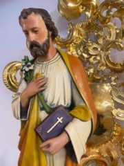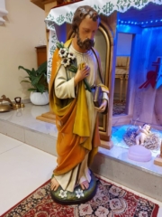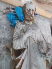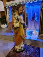 Ufamy że to właśnie dlatego że rok 2021 został ogłoszony Rokiem św Józefa – On też upomniał się o to aby ponownie znaleźć się na swoim miejscu i opiekować się naszym Domem. dzięki dobrym ludziom (m.in. Paulina –  dzięki ;-)) udało się aby dziewiętnastowieczna figura znów wyglądała jak dawniej. Po Mszy Świętej mężczyźni naszej Wspólnoty wnieśli uroczyście figurę do Domu Miłosierdzia.